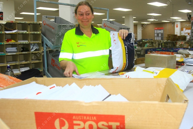 ALLOCATE: Amanda Lewis allocates mail during the sorting process at the Alice Springs Post Office. (PIC: PHIL WILLIAMS 504197_04)