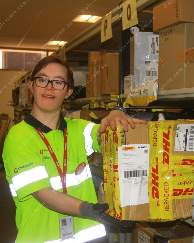 PARCELS: Ted Duffell places a parcel on the shelf ready to be collected. (PIC: PHIL WILLIAMS 504197_08)