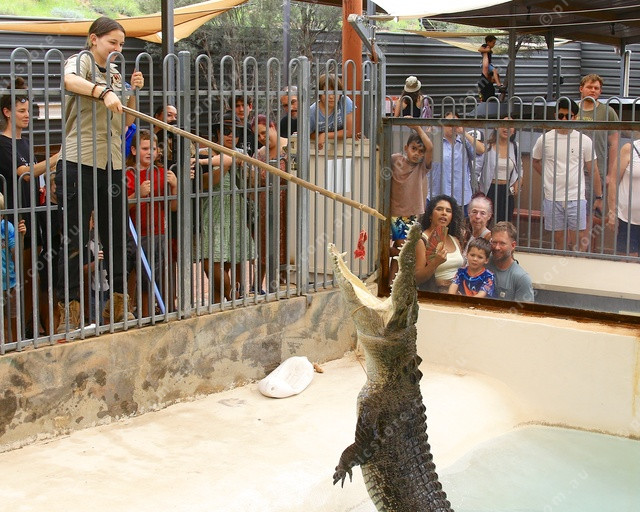 SNAP: Terry the Croc launches out of the water to snap a piece of stek being dangled above the water. (PIC: PHIL WILLIAMS 536216_04)