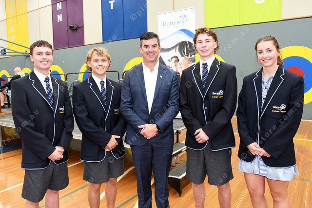 School leaders Brayden, Mackenzie, Luke and Charlee with Brad Battin MP (centre) 462334_01