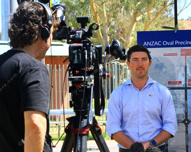 CAMERA: Minister Josh Burgoyne facing the media at the announcement of the ANZAC Oval Masterplan. (PIC: PHIL WILLIAMS 445603_07)