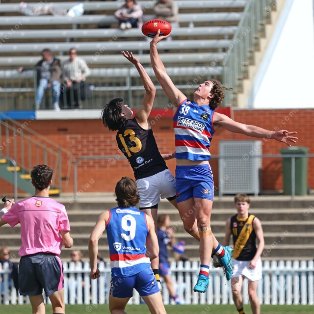 Towering Central District ruck Hugo Semmler wins one of his 41 hit-outs while not Glenelg player had more than four. (Michael Slattery: 496952_04)