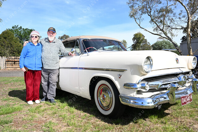 Ray Jones is auctioning motoring memorabilia and workshop equipment. Pic is Ray and his wife Gaye with a Ford Crestline which is going under the hammer. (Damjan Janevski). 516401_01