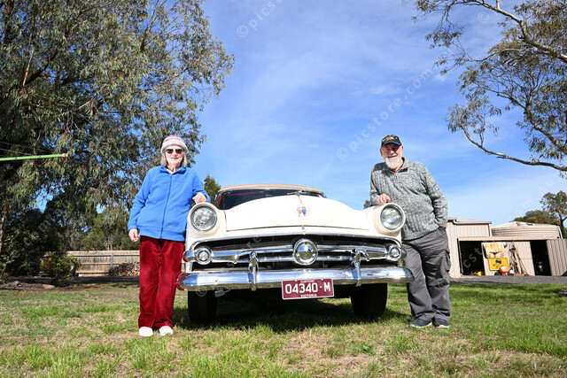 Ray Jones is auctioning motoring memorabilia and workshop equipment. Pic is Ray and his wife Gaye with a Ford Crestline which is going under the hammer. (Damjan Janevski). 516401_05