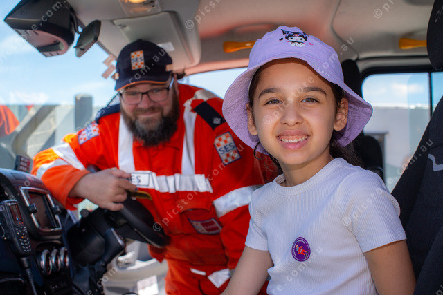 Ava from Dingley has a tour of the Cranbourne SES vehicle by Phil Brentnall (Cranbourne SES).