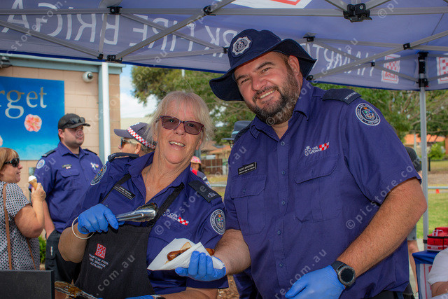 L-R Cherie Hunnman and Scott Appledore from Hampton Park Fire Brigade working the BBQ.