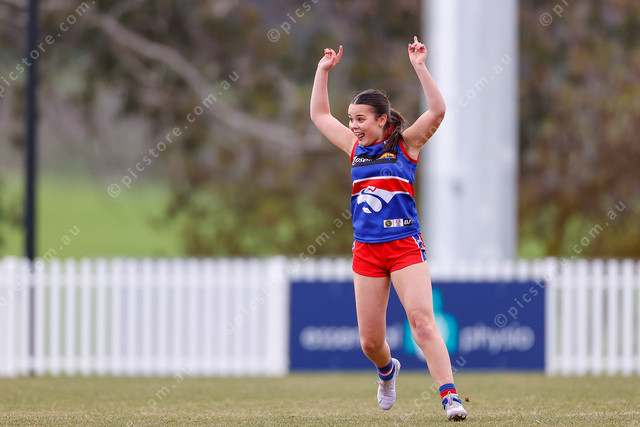 Barossa District’s Sienna Goddard celebrates one of her goals in a big win at the Bulldogs’ home ground. (495730_01)