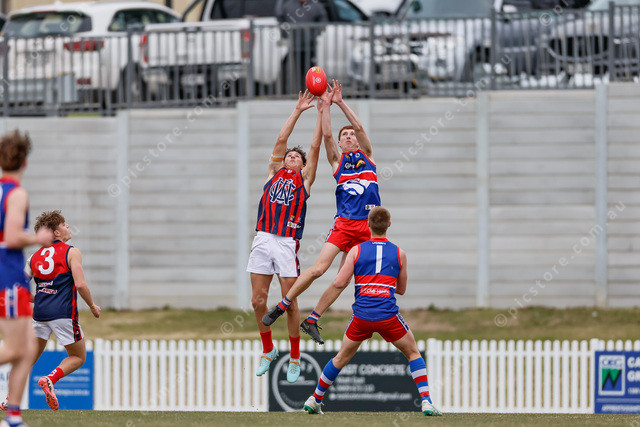 Charlie Moss and Beau Daniel battle for the mark. (495290_03)