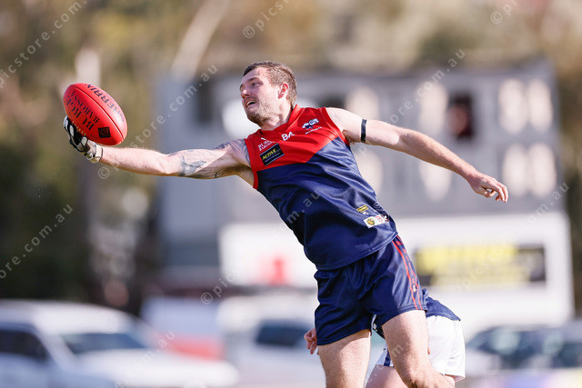 Willaston’s Ethan East makes the most of his one glove by reeling the footy in with his fingertips. (496717_03)