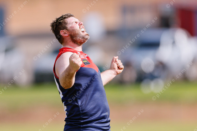 Willaston’s reserves goals leader Zac East lets out a roar after the second of his two goals in a close four-point win. (496714_04)
