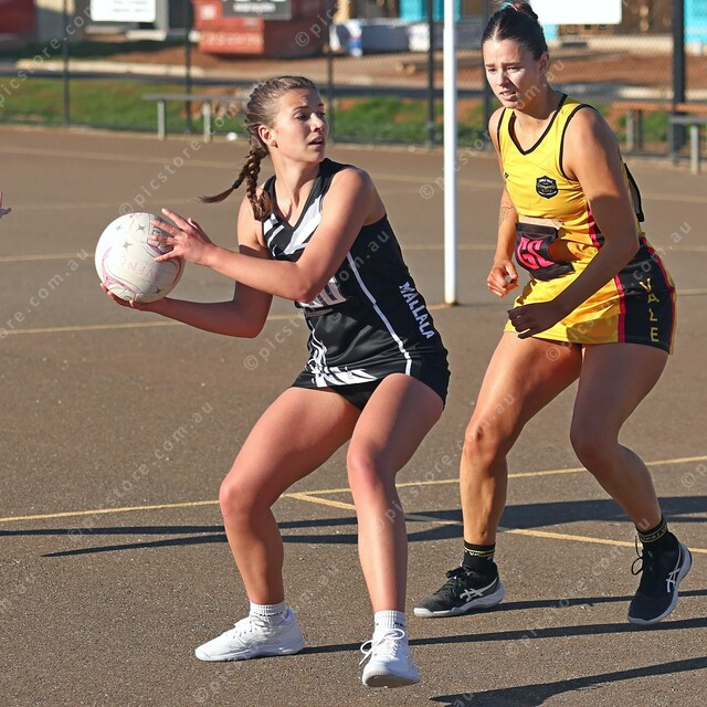 Magpie Kashaya Carpenter controls the ball in defence and looks for the way forward. (498453_04)