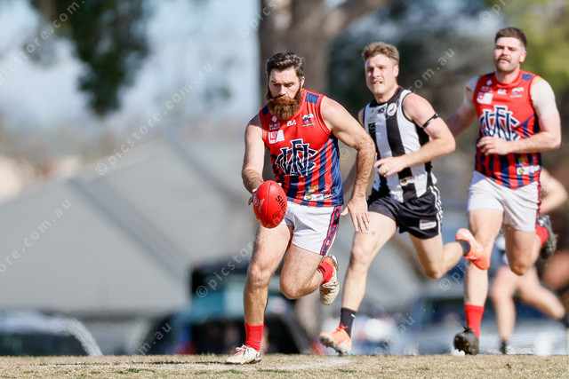 Dashing Willaston left-footer Isaya McKenzie bursts through the centre of Tanunda Oval. (498232_08)