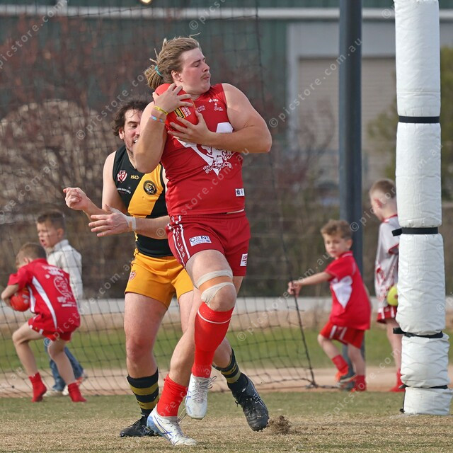 Two Wells’ star forward Jakob Thomson marks on his chest. (493940_08)
