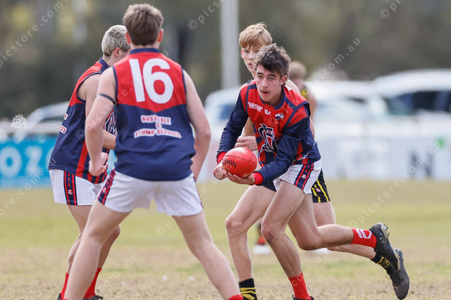 Oliver Barrass dishes off a handball. (493921_04)