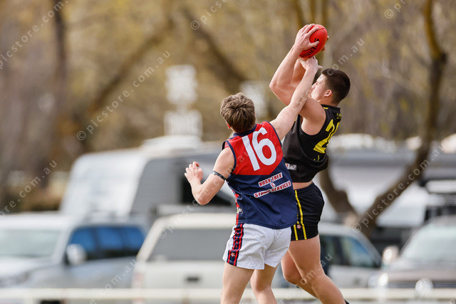 Ari Chapman takes a strong contested mark on his way to a game-high four goals. (493921_06)