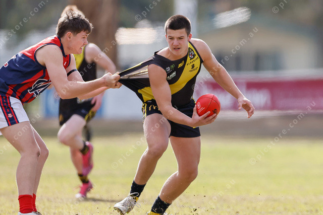 Nick Watts grabs a hold of Ari Chapman’s jumper. (493921_08)