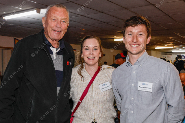 Bim Lange OAM, Danielle Langelaar and Aaron Eckermann of the Leukaemia Foundation. (Mark Willoughby: 493780_09)