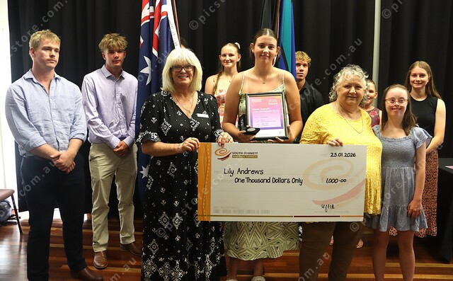 Cr Little and Cr Erkens stand with all nominees for the Junior Sportsperson award. 535591_02