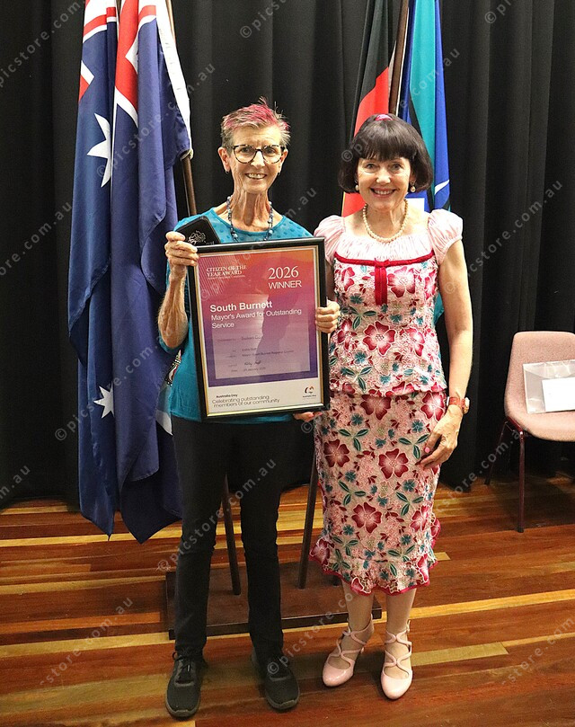 Susan Cox recieves the 2026 Mayor’s Award for Outstanding Service, stands with Mayor Kathy Duff. 533087_01
