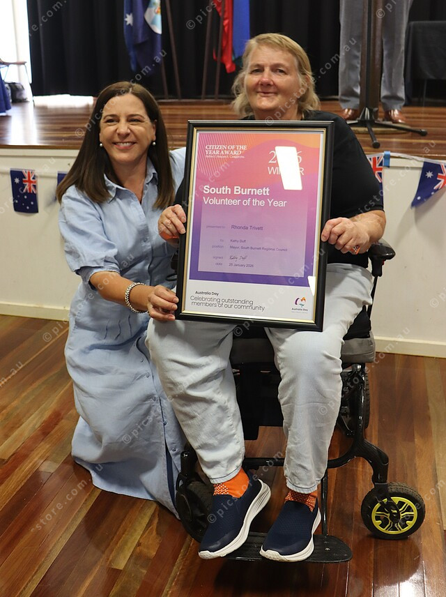 Deb Frecklington presents Rhonda Trivett with South Burnett Volunteer of the Year. 533178_01