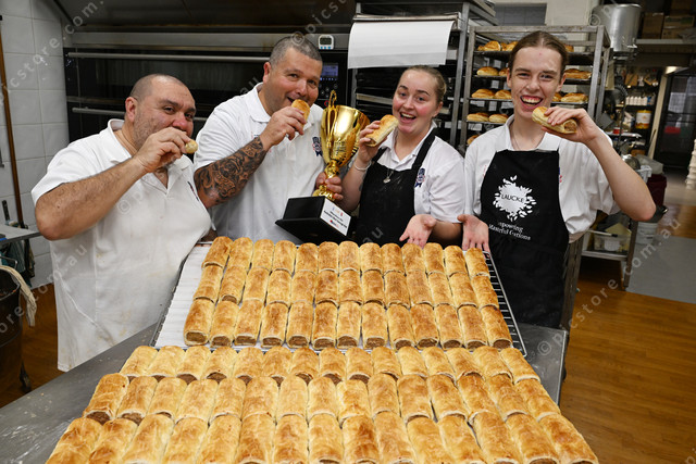Whittlesea Bakehouse won Australia’s Best Sausage Roll. Pic of Michael Valenti, owner Adrian Caporetto, Patrick Bloodworth and Sarah Baerken. Photo by Damjan Janevski. 480576_04