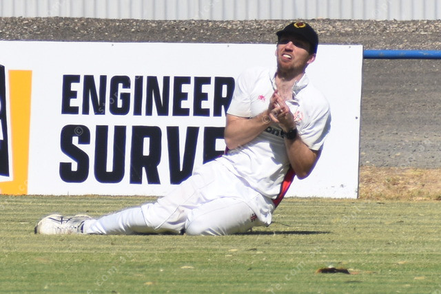 Kapunda’s Kallum Brown slides to take the catch to dismiss Jackson Harnas, before the ball could reach the boundary. (Jarrad Delaney: 458381)
