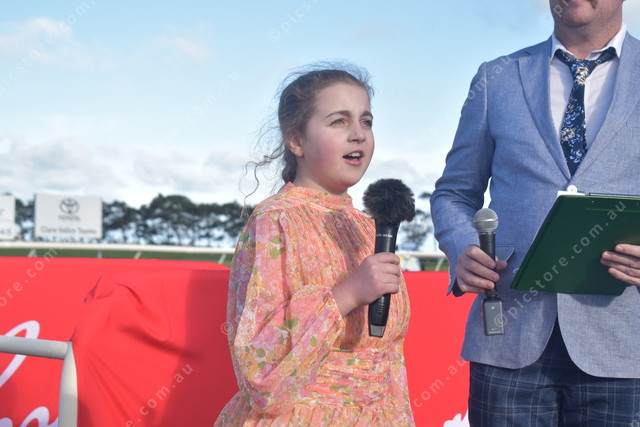 Georgia May from Balaklava sang the national anthem before the Balaklava Cup race. (502680)