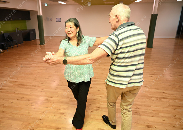 Sydenham Neighbourhood House ballroom dancing lessons. Pic of dance instructor Rosie Dinh and Lawrence Jackson. (Damjan Janevski). 534225_06