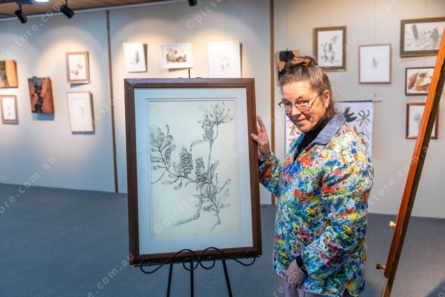 Artist Kerry Robinson with one of her works. From “Cranbourne Friends” money from sales goes back to the Botanic Gardens. 492087_02