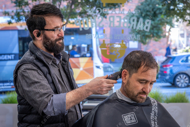 L-R Mohammad Mohsa (Barber) and Gholam Nazai (Customer).