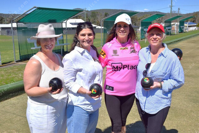 Bowls in hand and smiles all round as Rebecca Torrisi. Fiona Patti, Angie Sims and Gwen Muphy enjoyed the friendly competition.