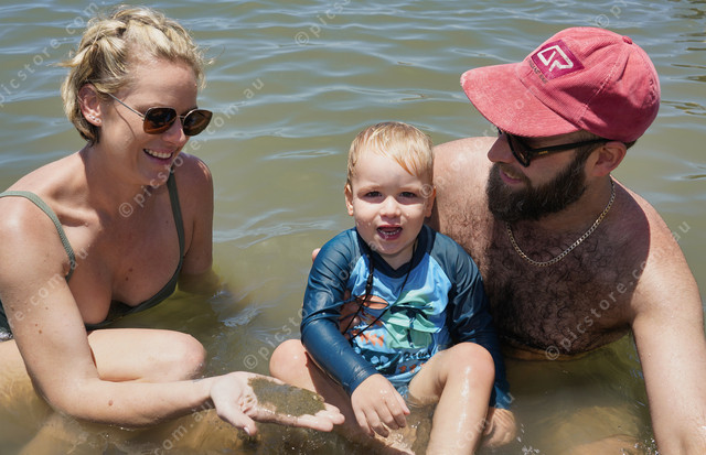 Enjoying a refreshing dip were Emilee Essex with George 2 and Emmanuel MacIndoe. (Solana Photography: 526779_06)