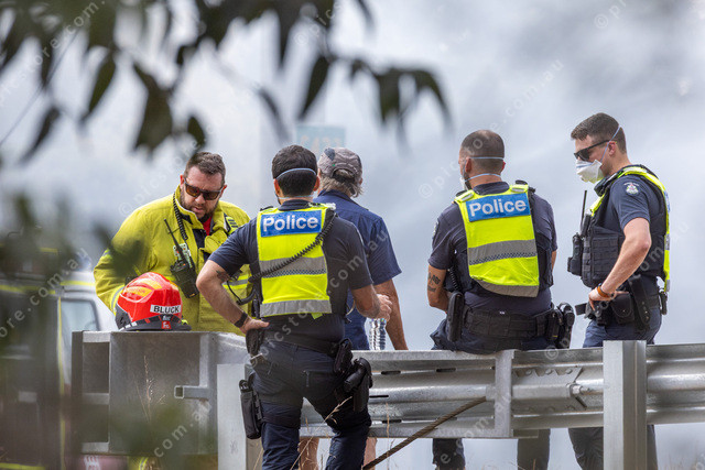 Police and Firefighters discuss the situation. A lot of roads were cordoned and this was as close as I was allowed. Plus shooting through the trees.