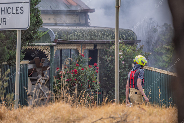 A firefighter at the scene of the battery fire.