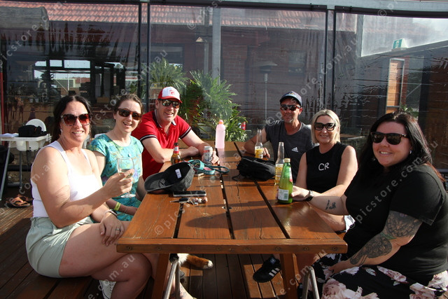 Sarah, Sylvia, Nick, Duncan, Adele and Suzannah enjoying the Friday night beach volleyball.(Dee Elferink: 524565_05)