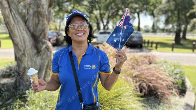 New Australian citizen Rosefel Peel proudly waves the flag (Jess Leis: 530789_05)