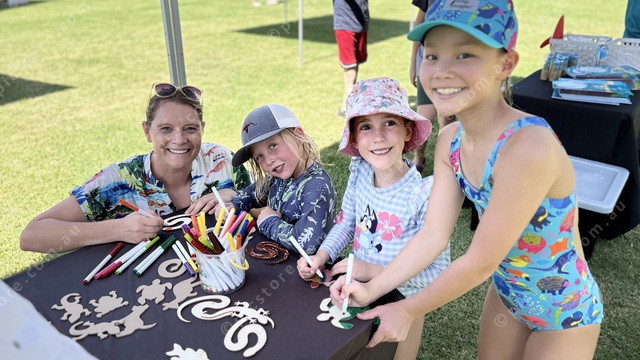 L-R Natalie Wood, Teddy Thompson, Milla Welsh and Starla Rose Hart all have a go at the crafts (Jess Leis: 530789_07)