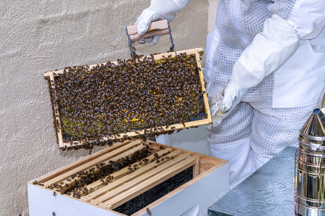 Alice Lin in her beekeeping outfit attending her apiaries.