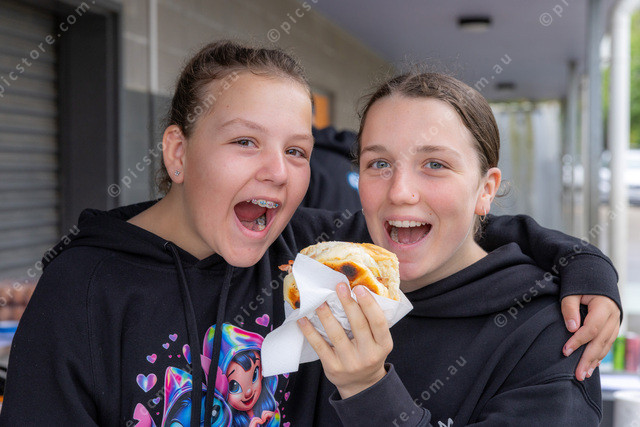 L-R Krystal and Akayshah from Knotty G&K grabbing a Bacon and Egg Roll that Dad was cooking.