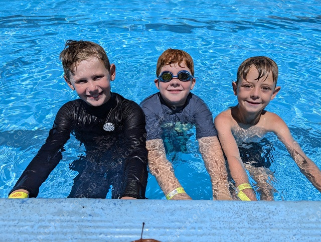 Sonny, Logan and Jude from Yarra Junction, Wesburn and Mt Evelyn splashing about at Belgrave Pool. (Tanya Steele: 453671)