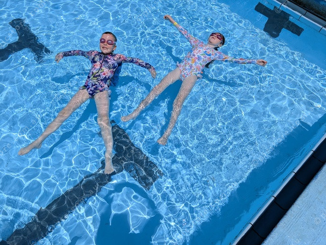Hannah and Zoe doing the safety starfish float. (453671)