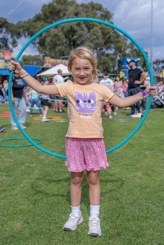 5yo Clara from Bayswater tries her hand at the Hula-Hoop.