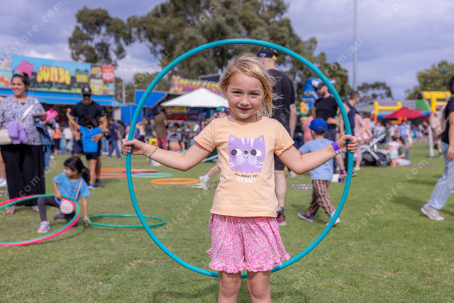 5yo Clara from Bayswater tries her hand at the Hula-Hoop.
