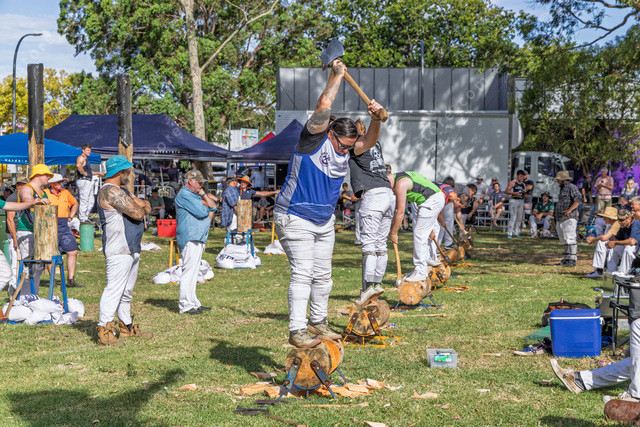 The closest chopper is Adele Deverell from Kilmore, she is wearing a Victorian top.