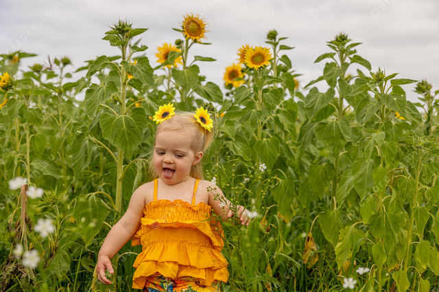Mackenzie Henschell in amongst the sunflowers.
