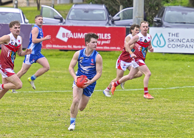 Tom Baker (2 goals) runs forward (Ivan Kemp) 490549_07