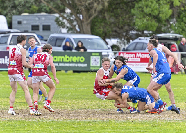 Josh Lange is taken down in a strong team tackle (Ivan Kemp) 490549_17