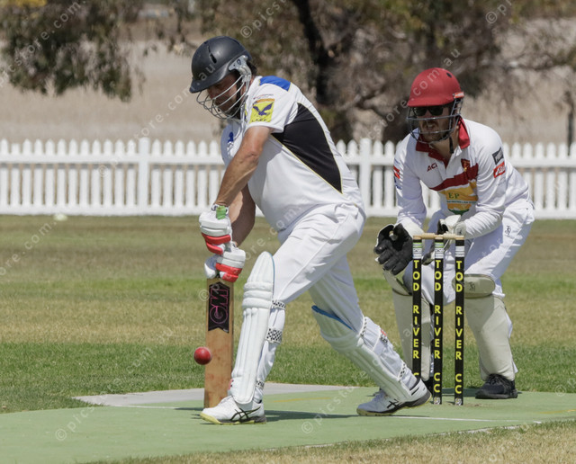 Tod River Souths’ Craig Dorward plays a defensive shot, watched on by Southern Eyre South wicketkeeper Alex Marinelli. (464487_02)