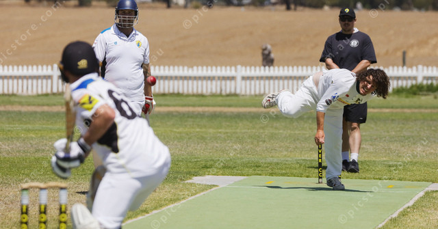Charlton’s Michael Simpson bowling to Tod River Souths’ Todd McShane. (535067_02)