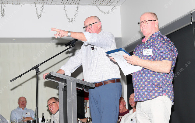 John Lynch working as the auctioneer during the bidding process, with Mark Corey as his pen man.